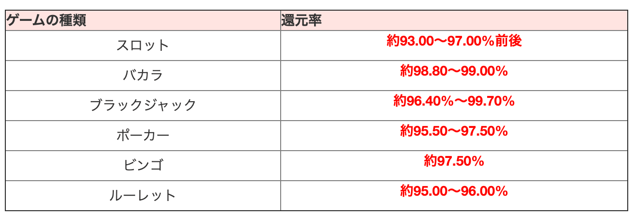 (オンラインカジノはそれぞれ各企業ごとに還元率を発表していることもあります。)